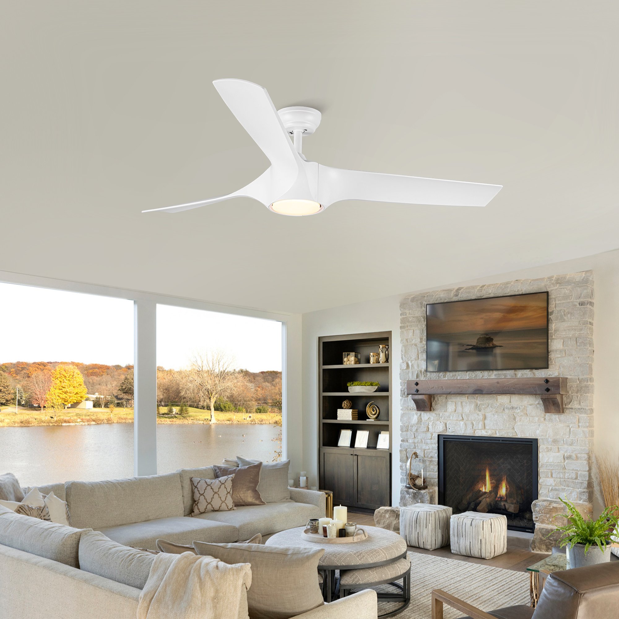 A fan for all seasons and styles, this matte white finish ceiling fan with under lighting and remote control has a classic propeller design that blends well with styles from modern. Its motor provides 6 speed options, and it improve air circulation to keep you warm in winter and cool in summer. Its LED light kit with ABS shade provides 3 color temperatures for different rooms and occasions. The remote control conveniently controls all of its settings and options, including a timer. Wobble free and quiet DC motor provides a peaceful breezing environment. It suits for living room or a medium to a larger bedrooms your wide open.Specifications:RPM:176Lumens:1700Blade material: ABSMaximum Airflow:7500LED lampshade material: acrylic